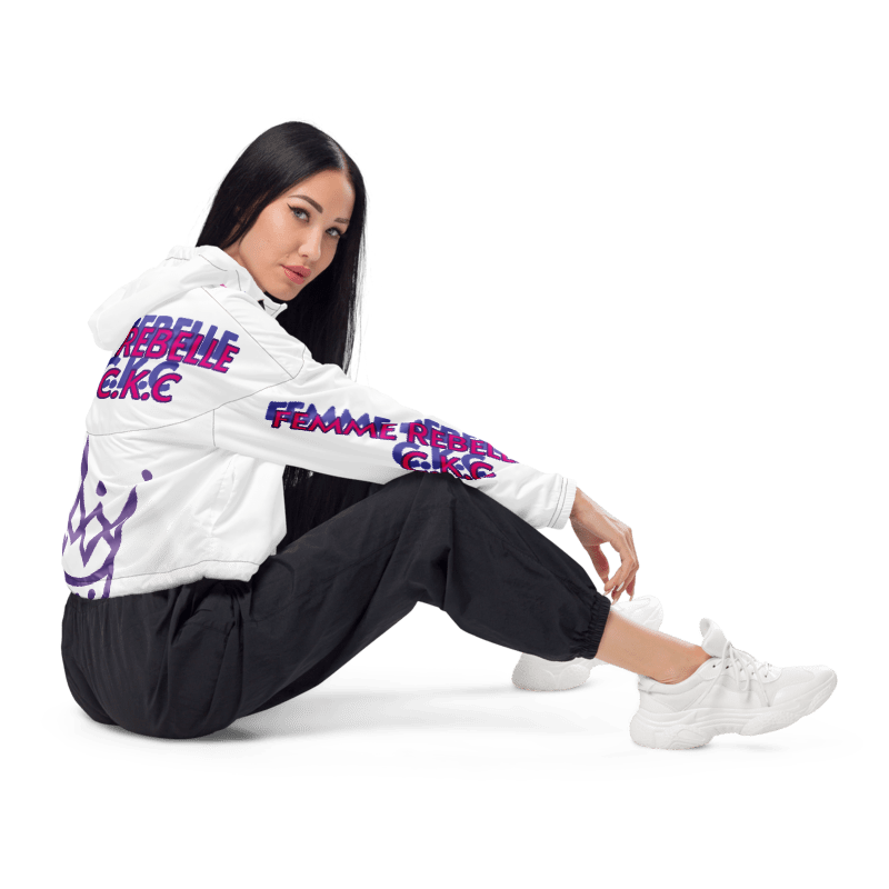 Ce coupe-vent croppé pour femme en impression all over est doté d'une doublure en maille respirante et est léger, imperméable à l'eau et facile à glisser dans un sac ou un sac à main. Parfait pour les jours de pluie surprise et les randonnées chaudes ou pour rester au chaud tout en vous promenant en ville : il est utile pour toutes sortes d'activités ! Concevez ce coupe-vent et commencez à le vendre en ligne ou achetez-le pour vous-même.